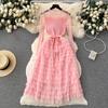 Winter Autumn Elegant Women Lace Mesh Hollow Out Patchwork Dress Casual Lady Ruffled A-line Dress Party Cake Dress