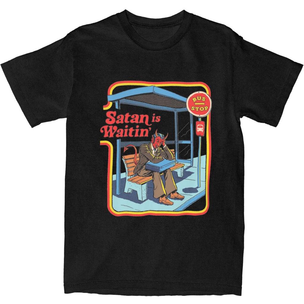 Satan Is Waiting Funny Vintage Dark Art Men Women's T Shirts Humor Pulp Art Apparel Novelty Tees T-Shirts 100% Cotton Clothing
