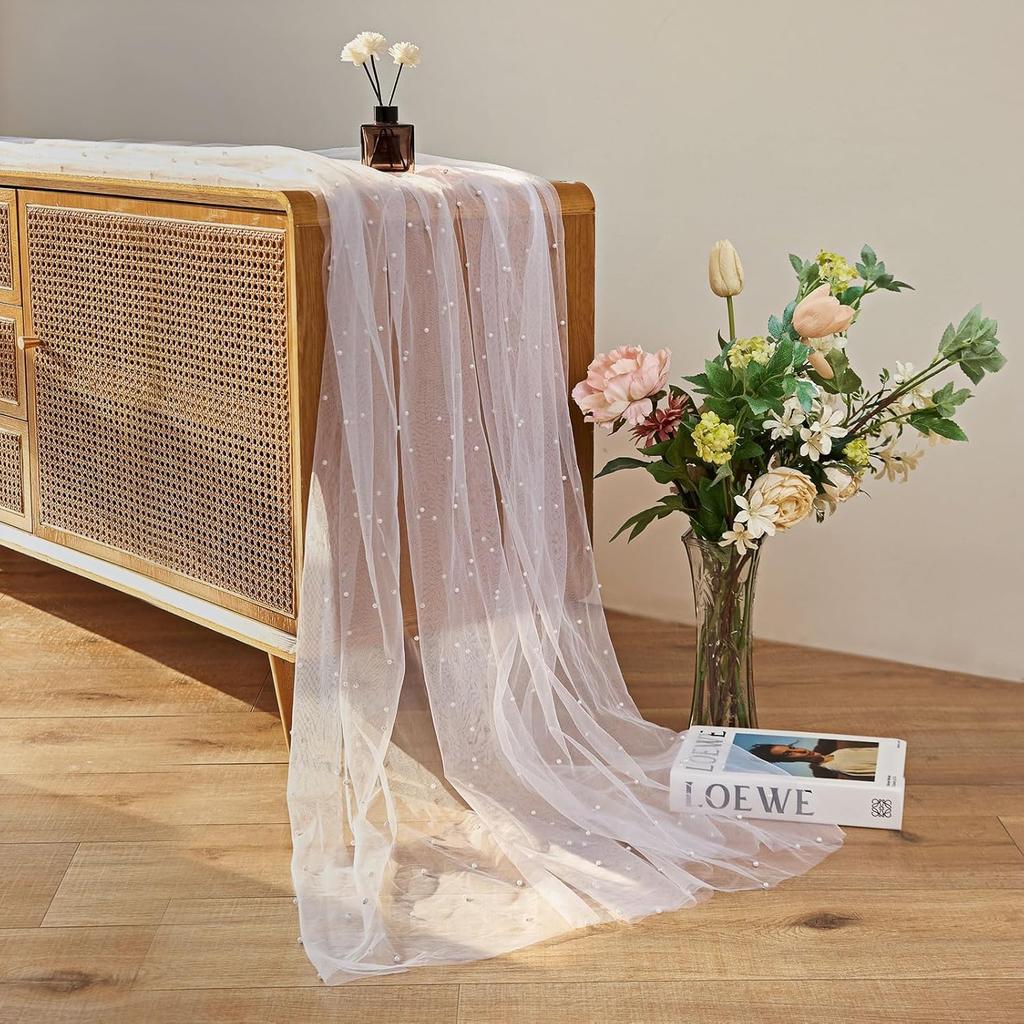 Table Runner Wedding Decorations White Table Cover Lace Fabric Table Cloth for Sequins Overlay Birthday Bridal Shower Party