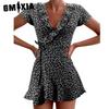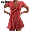 GMXIA Summer Women A-Line Floral Print Dress Cute Elegant V-Neck Floral Ruffle Short Dress for Lady Chic Flower Mini Dress