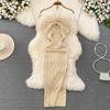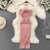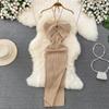 Summer Women's Dress Celebrity Temperament Hanging Neck Hollowed Tight Slim Backless Sleeveless Medium-length Split Package Hip Knit Bottom Dress