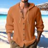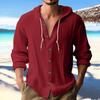 Mens Fashion Casual Solid Color Simple Casual Button Hooded Shirt Top Casual Commuting Short Sleeved Shirt