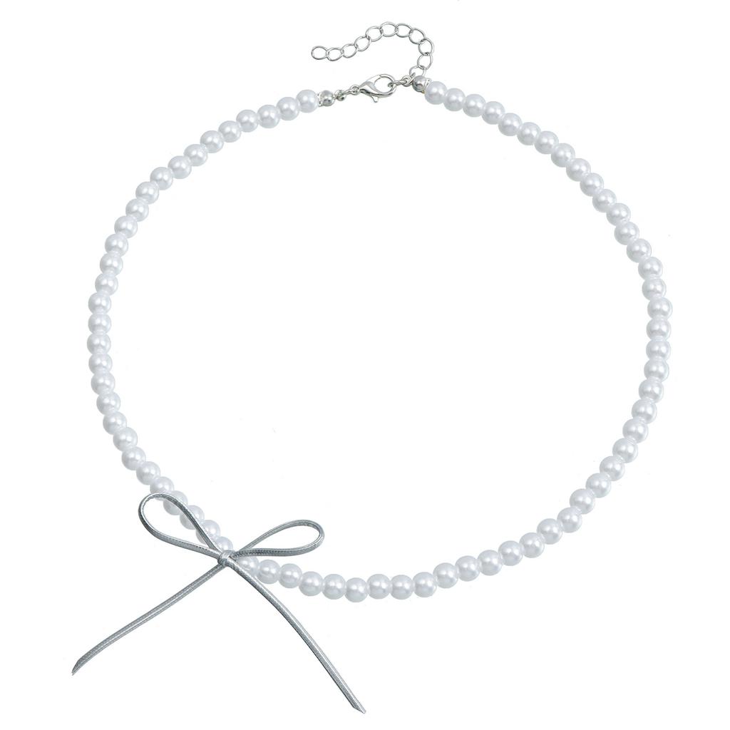Jewelry Bow Pearl Necklace Female Design Clavicle Chain Silver Leather Rope Necklace