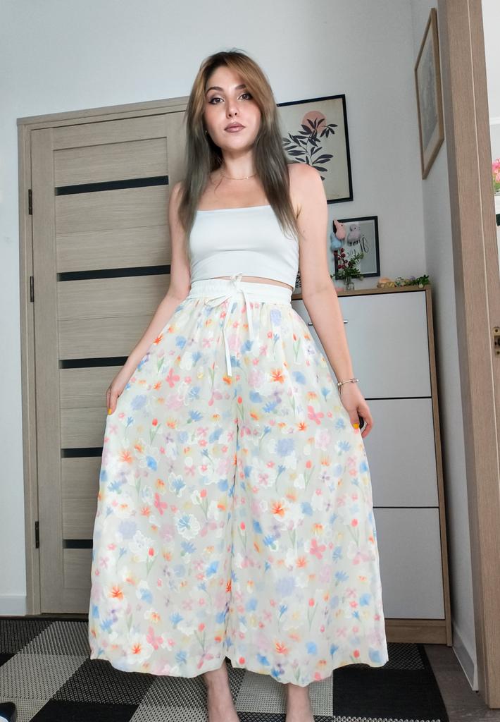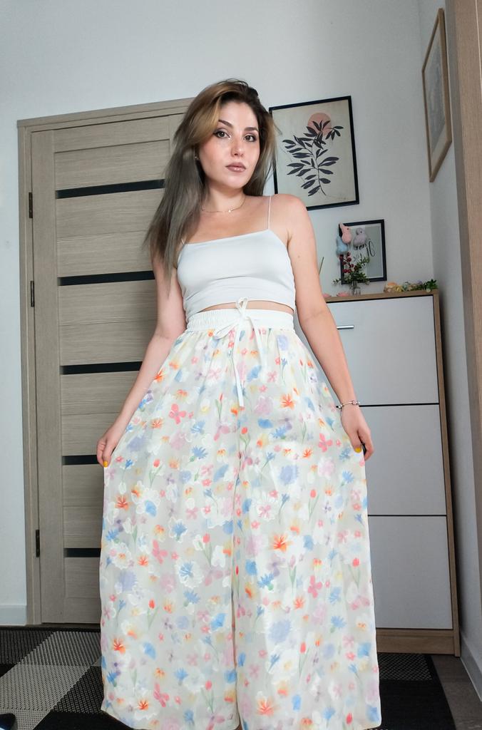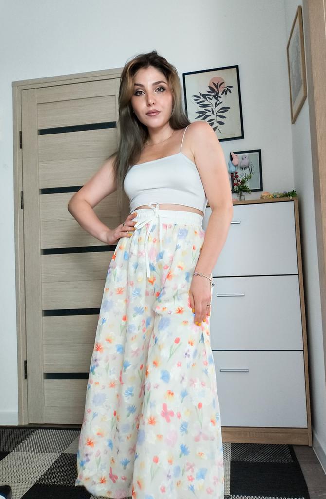 Summer Fashion Floral Print Pants High Waist Wide Leg A Line for Women