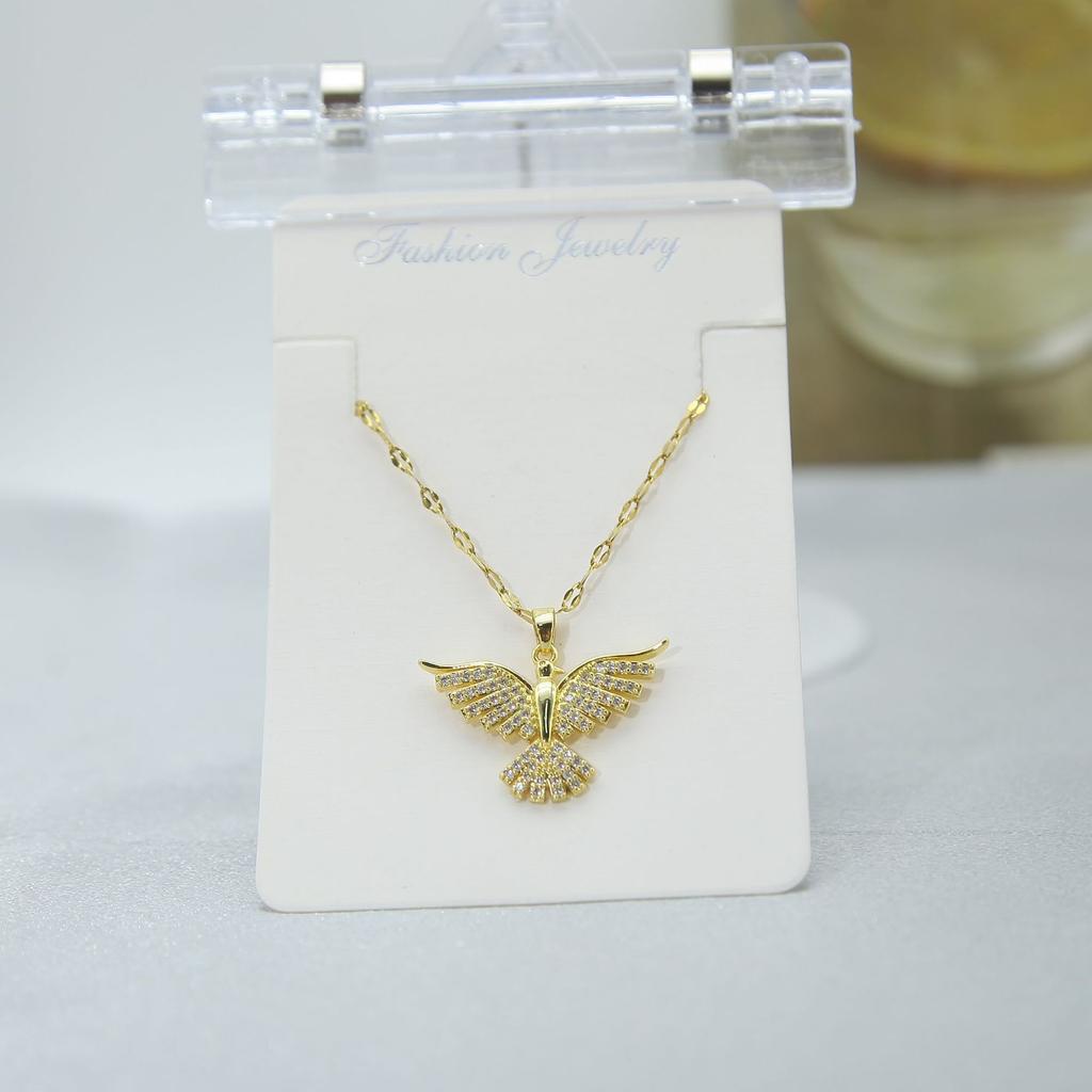 Titanium Steel Full Diamond Phoenix Wing Spread Necklace Women'S Light Luxury Simple Personality Versatile Collarbone Chain Jewelry