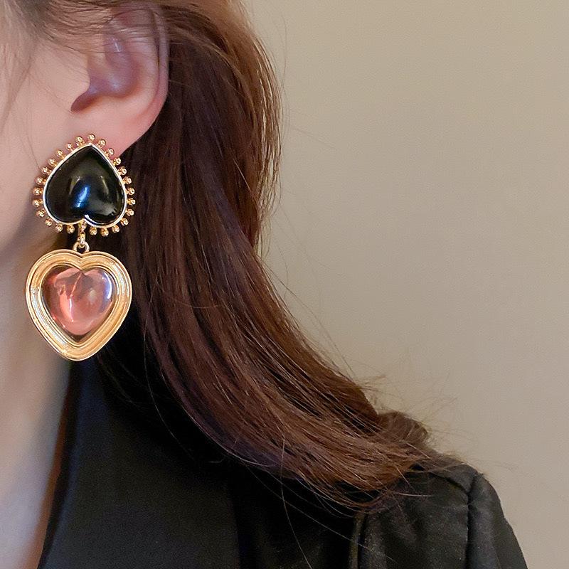Qingdao Resin Heart Earrings: French High-End Second-Hand Fashion for Women