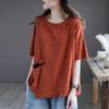 New Summer Loose Round Neck T-shirt for Women's Literary Style Half-sleeved Irregular Patch Top for Women