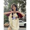 Loose Large Color-blocked Rotator Sleeve Rag-sleeved Short-sleeved T-shirt for Women In Spring and Summer Korean Style Design Top