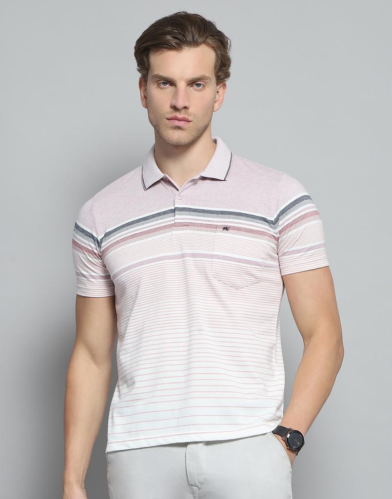 MONTE CARLO Mens Striped Pink Collar Neck Half Sleeve T-Shirt