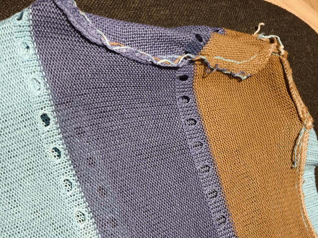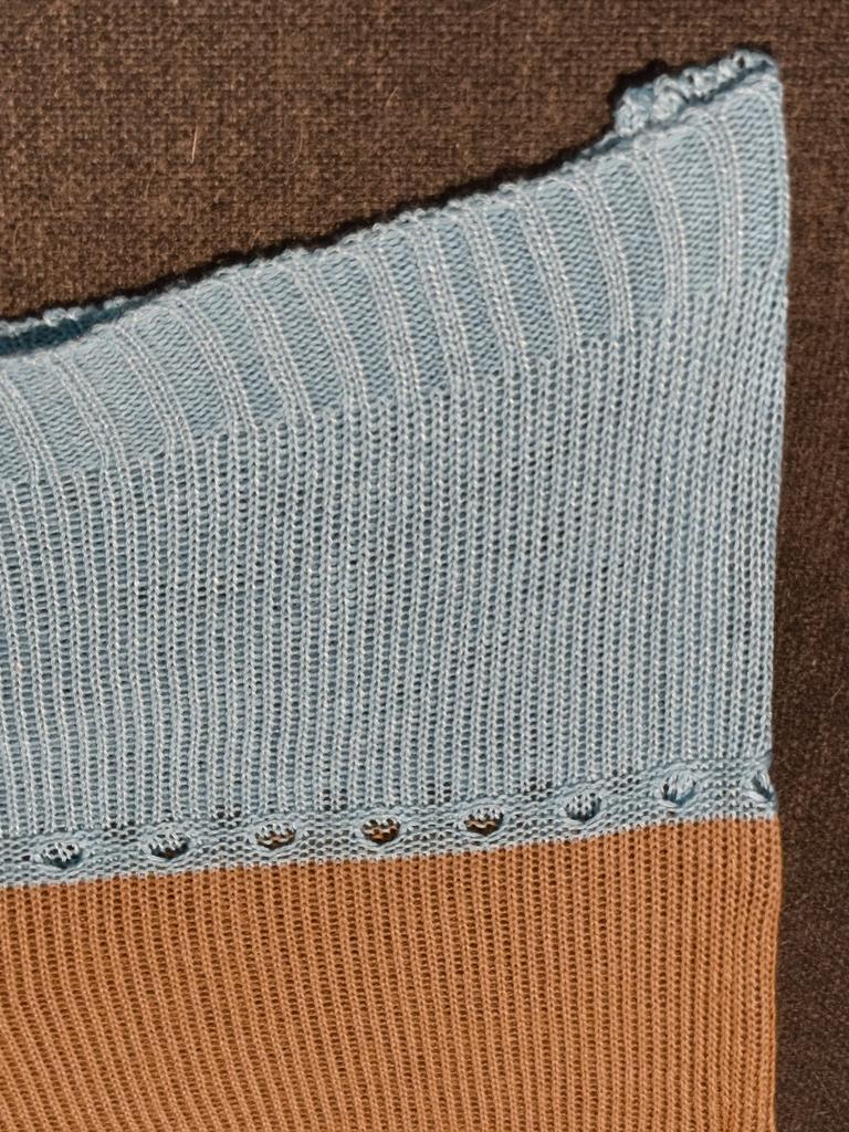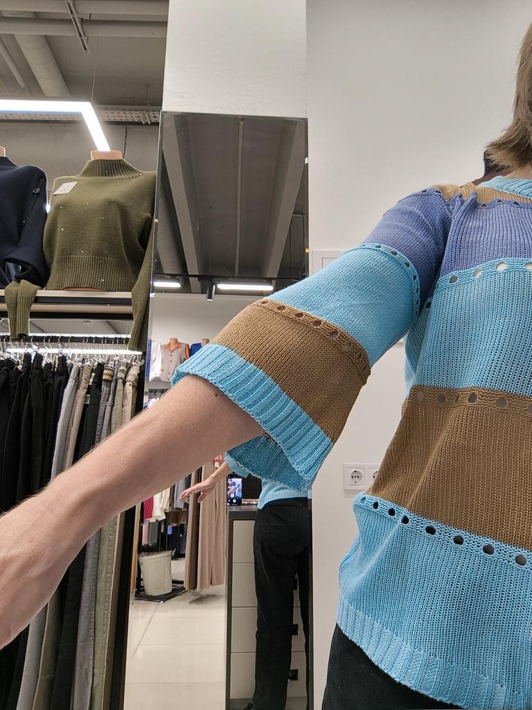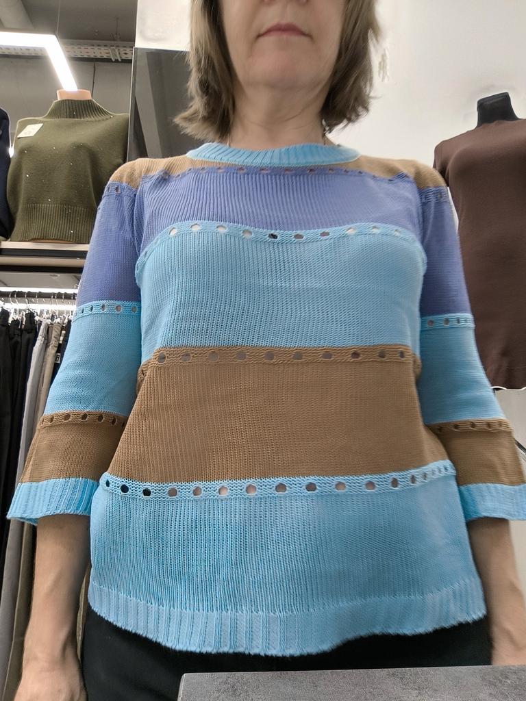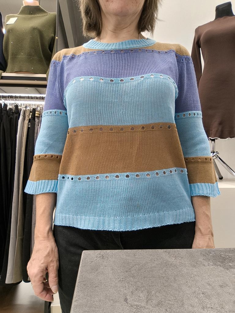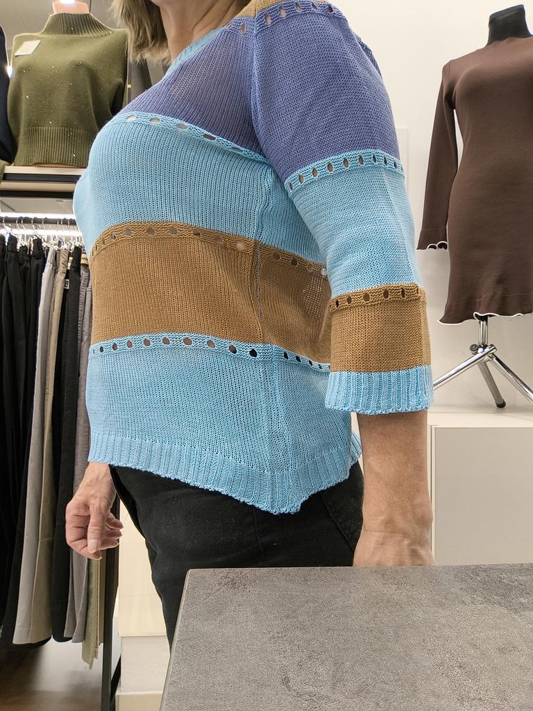 Autumn Hollowed Out Pullover Sweater for Women with Three Quarter Sleeves, Striped Loose Color Matching Casual Knit Sweater for Women's Inner Wear