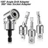 Angle Drill Chuck 105 Degree Attachment Hex Socket Adapter Extension Set Power Tool Driver Rotatable Screwdriver Bit Holder Nut