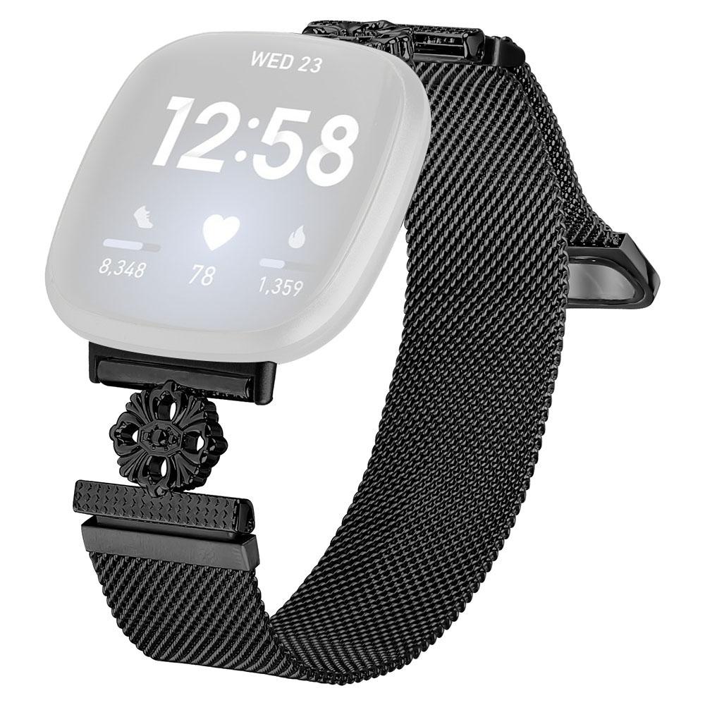 For Fitbit Versa 4/Sense 2 Milanese Band Flower Stainless Steel Magnetic Mesh Watch Strap