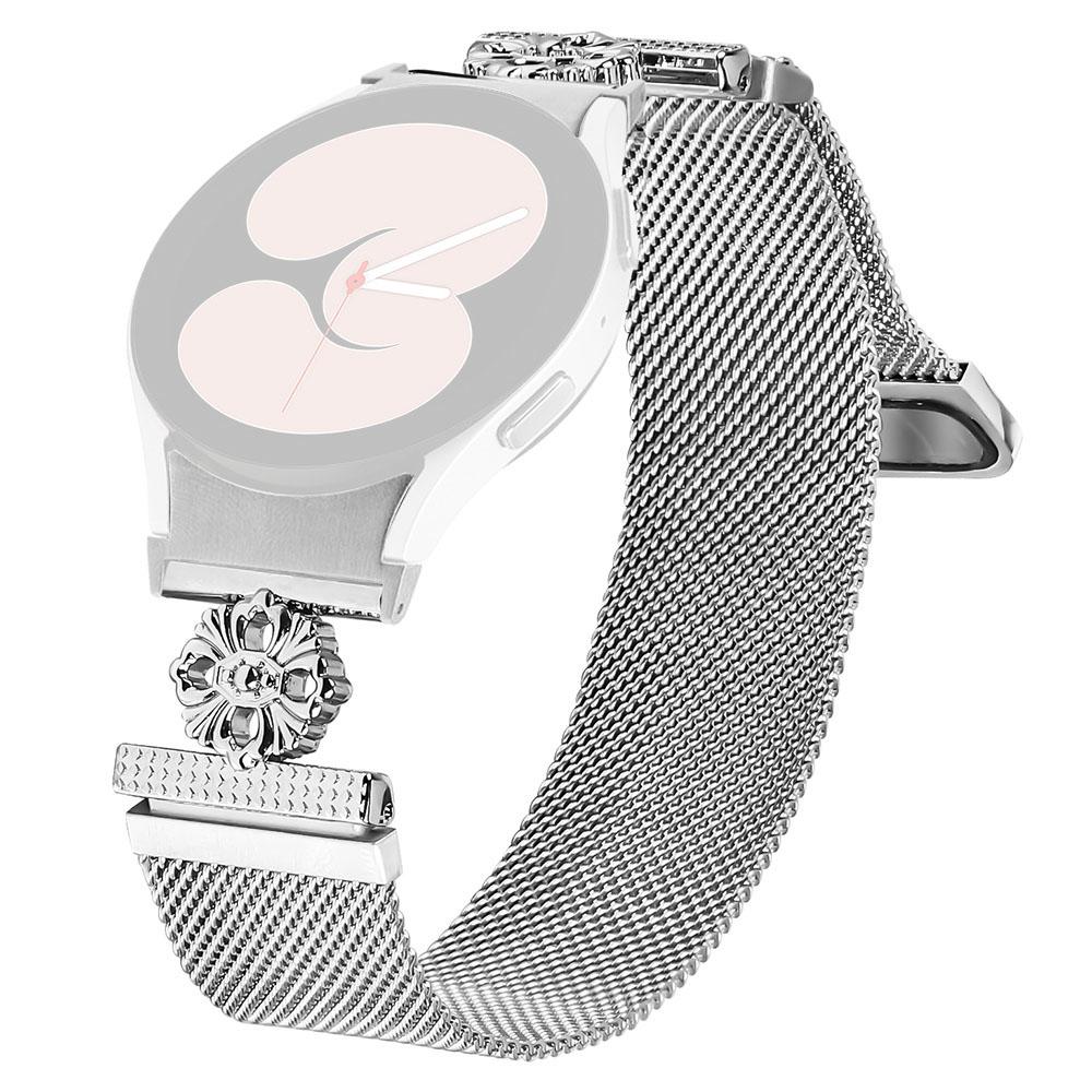 For Samsung Galaxy Watch6 Classic/Watch6 Milanese Watch Band Flower Stainless Steel Strap with Connector
