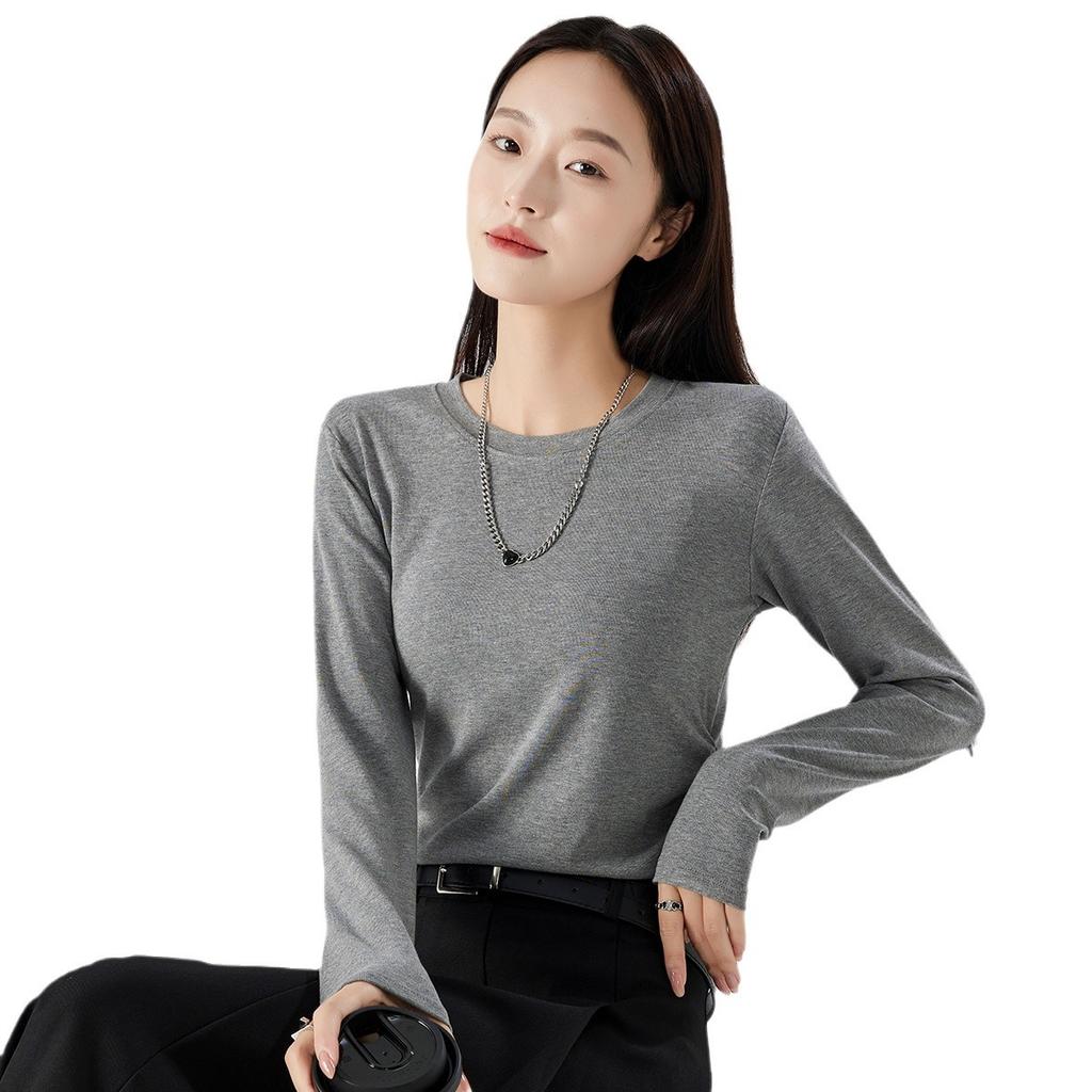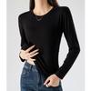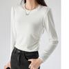 New Design Pleated Waist Hot Girl Long-sleeved Top for Women In Autumn and Winter Round Neck Straight Shoulder Bottoming Shirt T-shirt