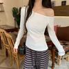 New Design-sensory Solid Color Off-shoulder Long-sleeved T-shirt for Women In Spring Niche, Unique Off-shoulder Pure Desire Top