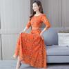 Mid-length Long-sleeved Round Neck Skirt Spring and Summer Printing A Word Elastic Waist Fashion Dress Woman Dress