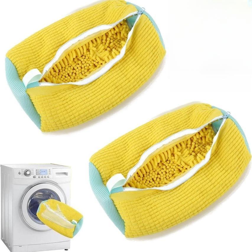 Made of tear-resistant, highly breathable chenille fabric material, the Shoe Wash Bag allows soap and water to flow through easily while perfectly preventing shoes from fraying and scratching in the washing machine. The unique shoe washing bag contains over 10,000 chenille microfibers measuring 3cm in length, which helps to thoroughly and gently clean shoes in the washing machine.