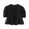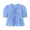 Discover the perfect blend of style and comfort with this trendy women's top, designed for the 2024 spring street fashion scene. Crafted from high-quality polyester, this top features charming lace-up detailing and puffed sleeves that elegantly capture the essence of contemporary fashion. The short sleeves and round neckline add a touch of casual sophistication, making it a versatile choice for any occasion.