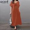 QICED Women's Fashion Summer Spring Solid Color Print Short Sleeve V-Neck High Waist Casual Dresses
