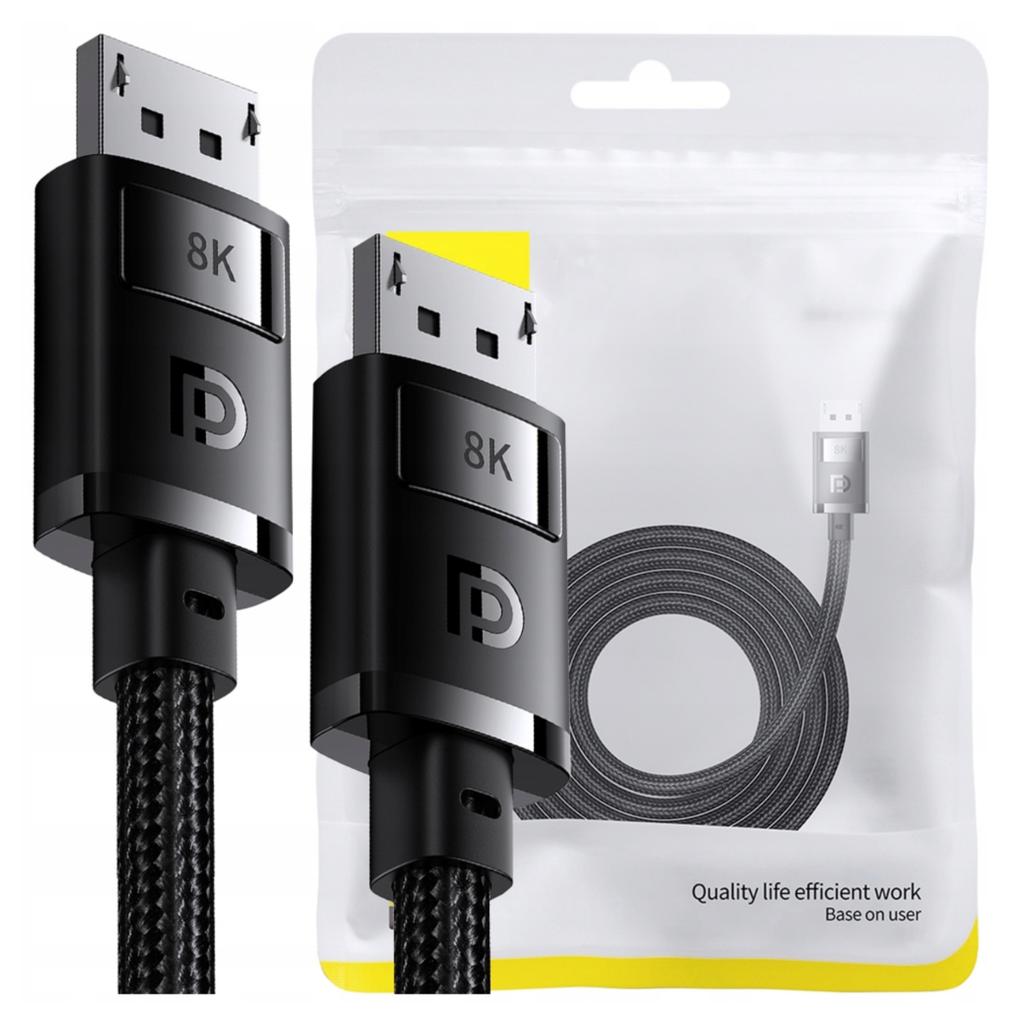 Baseus High Definition DP to DP cable with a length of 2 meters supports resolutions 8K, 4K, 2K and 1080P, providing an extremely realistic and detailed image. Thanks to the high refresh rate reaching 240 Hz, it also enables smooth gameplay.. Its 12-bit color depth guarantees more precise color reproduction, which translates into an improved visual experience. Furthermore, the cable supports HDR technology – so the images are full of contrasts and details. Thanks to synchronization of sound and image without delay (1 ms), you can enjoy perfect multimedia harmony. The product was also equipped with multi-layer shielding, eliminating the flicker effect.