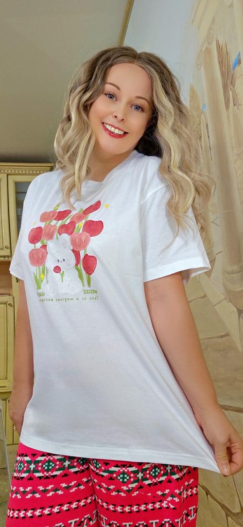 Summer Ladies Cute Cat Printed Cotton Breathable Style T-Shirt Short Sleeve