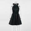 Vintage Stain Sexy Backless Halter Black Short Dress Women's Backless Pocket Short Dresses Female Birthday Party Evening Summer Dress