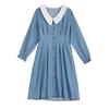 2025 Spring and Autumn New Lace Splicing Long-sleeved Denim Shirt Skirt Women's Loose and Thin Big Lapel Dress