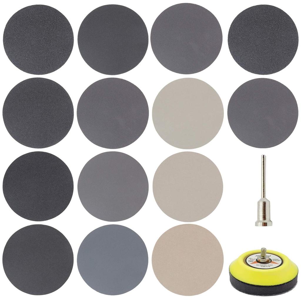 Particle size: 180 pieces (#60#80#100#150#240#400#800#1200#2000#3000#5000#10000) 15 pieces each of 12 types. There are many types, and it is easy to install with a magic type, and you can use it for a long time by replacing it. Good toughness, resistant to water sharpening, abrasive grains are not easy to peel off. Excellent durability. Scope of use: Generally used for polishing, grinding, repairing, surface polishing, deburring, etc. of fine products. With a size of 76 mm, even women can easily work with one hand. I'm also looking forward to DIY. A storage bag is provided to make it easier to organize after use.