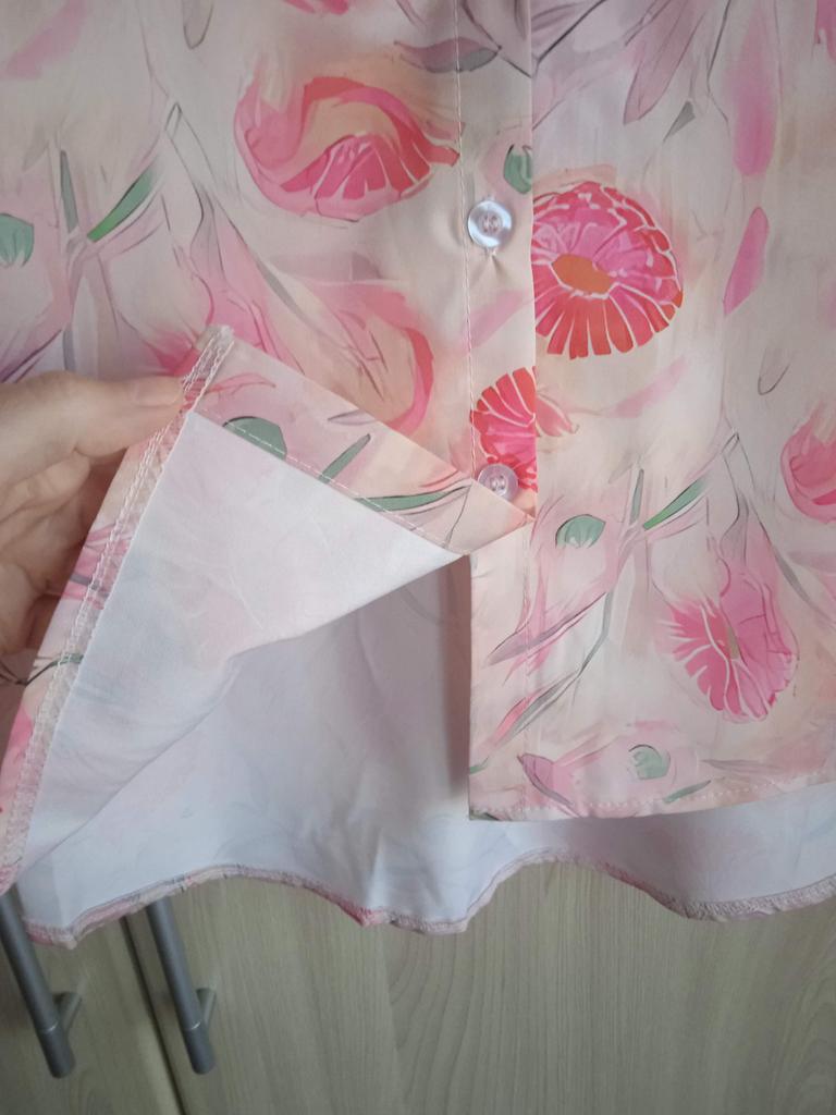 Women's Pink Crushed Print Cotton and Linen Long-sleeved Shirt Fall French Literary Loose Temperament Casual Blouse