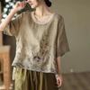 Women Tops Ruffle Sleeve Buttoned Cotton Linen Blouse Women's Fashion Embroidery Spliced Solid Color Summer Female Clothing Vintage