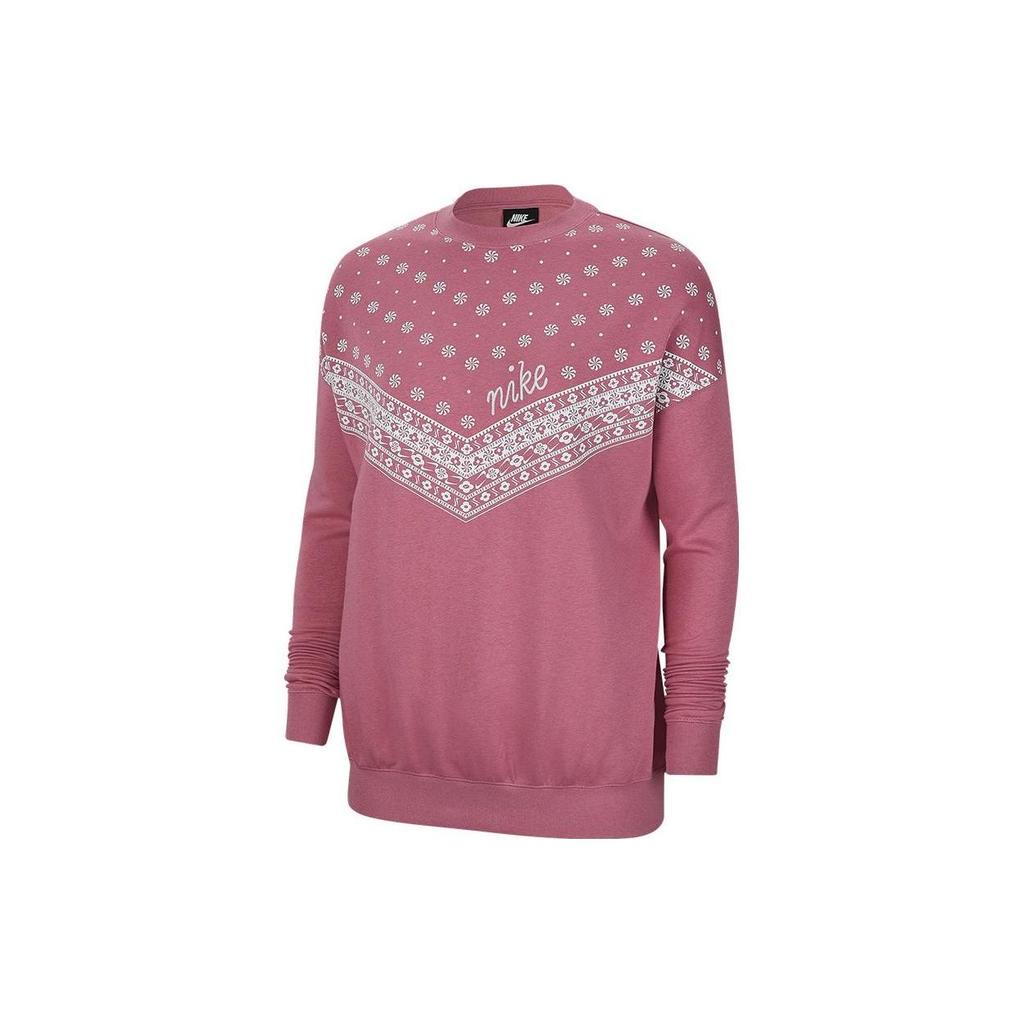 Nike Logo Print Loose Fit Crew Neck Long Sleeve Sweatshirt Women Sweatshirt Pink CU5949-614