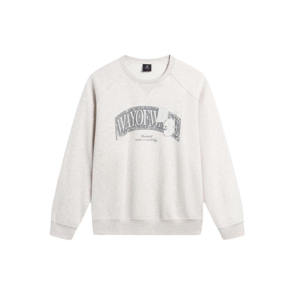 Li Ning Wade Series Letter Print Washed Loose Casual Crew Neck Sweatshirt Men Sweatshirt Flower-Gray Tile-Gray AWDU003-6