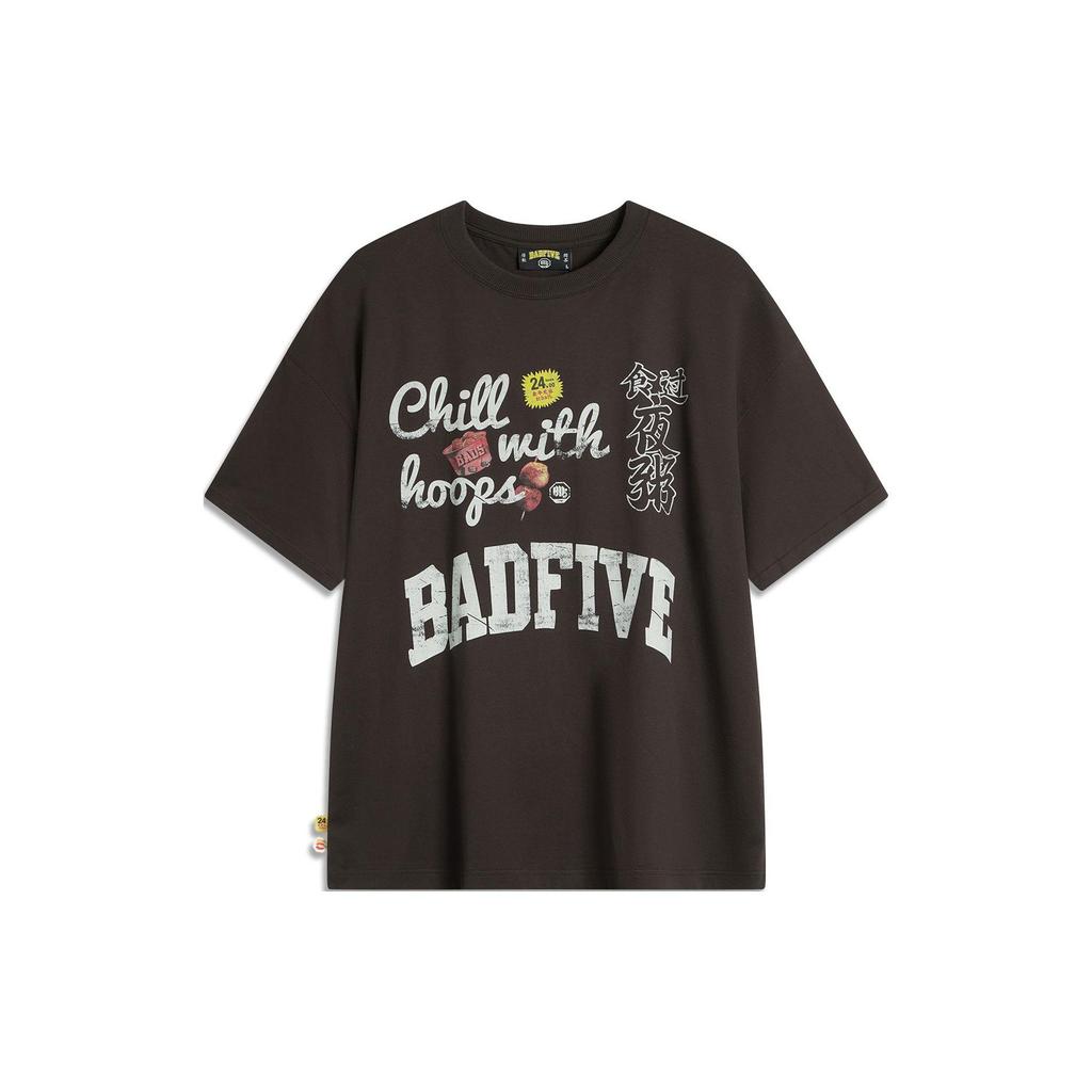 Li Ning Badfive Casual Tea Letter Round Neck Loose Breathable Comfortable Short Sleeve T-Shirt Men Tops Black Chocolate AHSU917-2