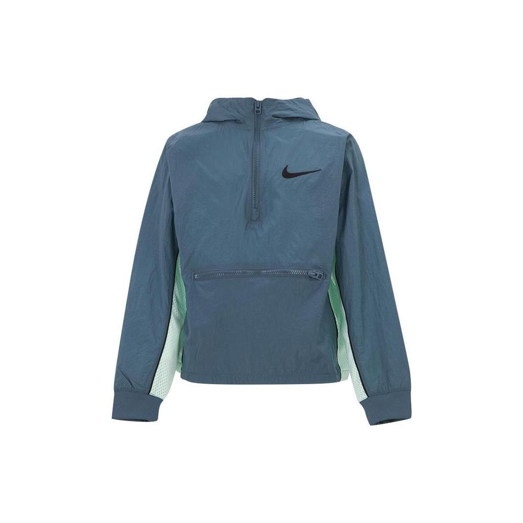 Nike Color Block Logo Print Half Zip Pullover Hoodie Jacket Kids Jackets Blue DM8178-058