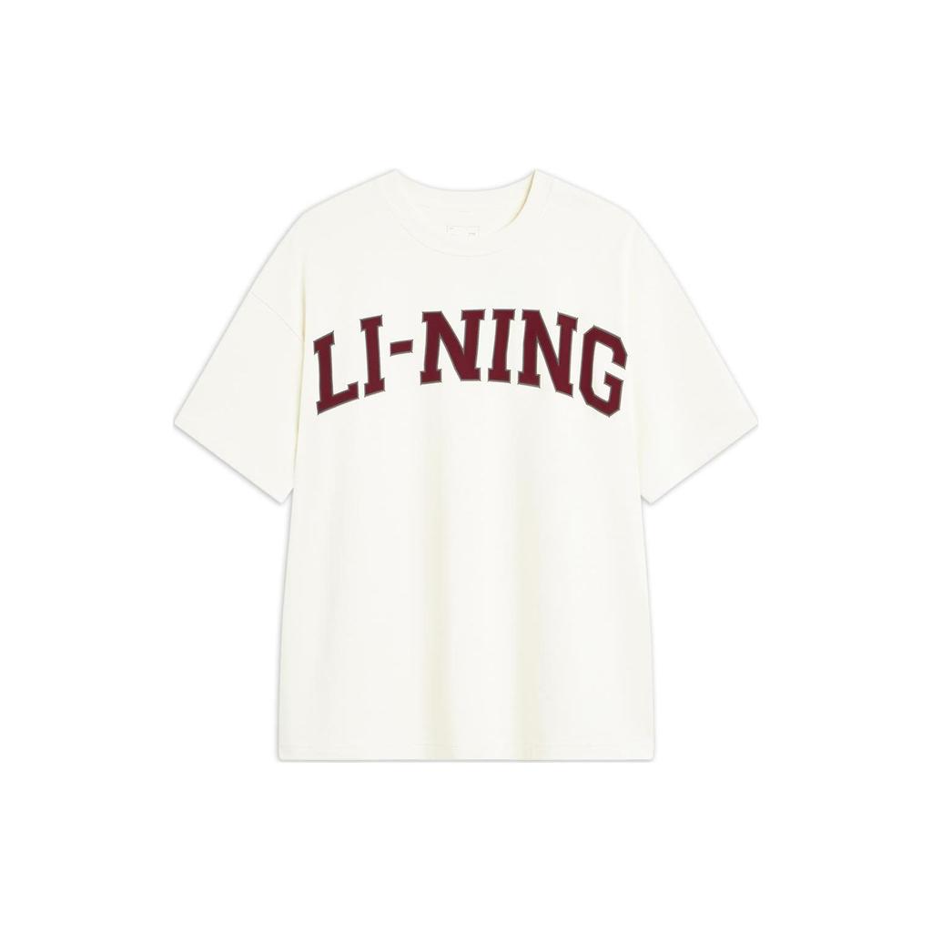 Li-Ning Weekend Youth American Vintage Round Neck Casual Sports Loose Summer Short Sleeve T-Shirt Unisex Tops Off-White AHSU653-1