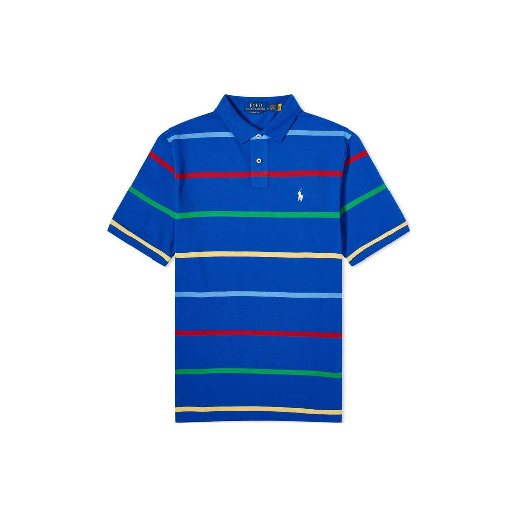 Polo Ralph Lauren Logo Embroidered Striped Straight Fit Short Sleeve Polo Shirt Men Tops Blue 710926410-001