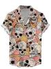 Vintage Men Shirts Funny Skull Flowers Printing Streetwear Short Sleeve Shirts Summer Hawaii Shirt Print Lapels Shirts for Men
