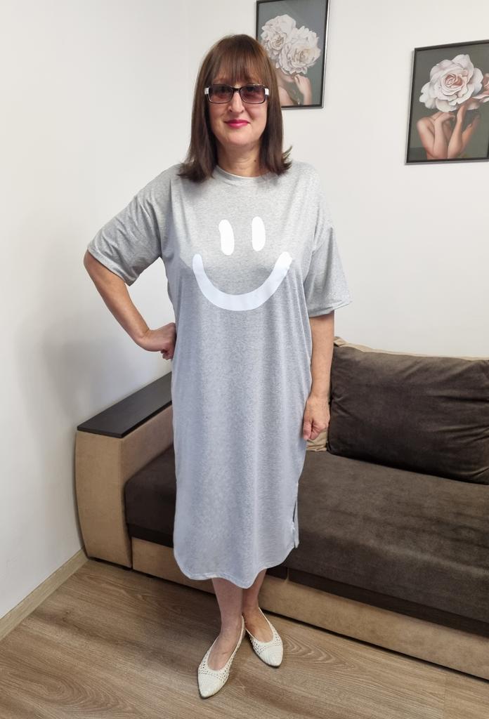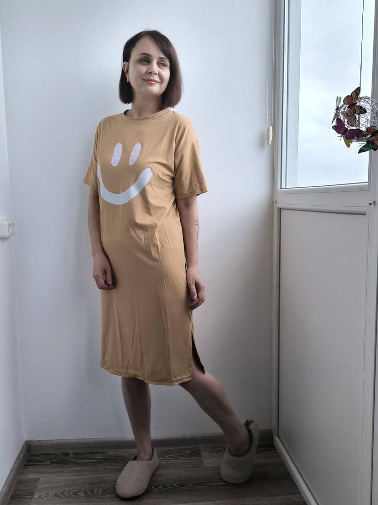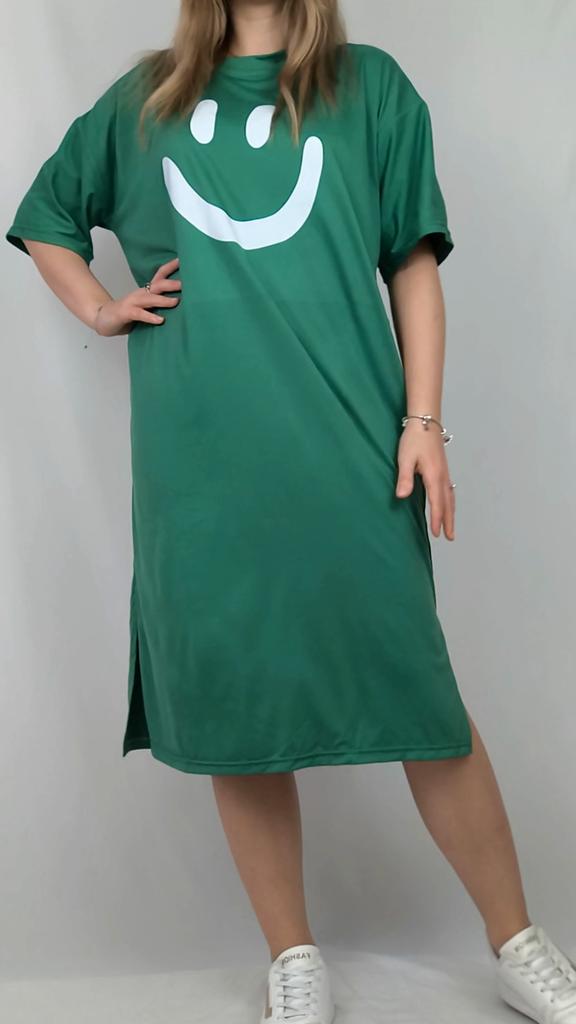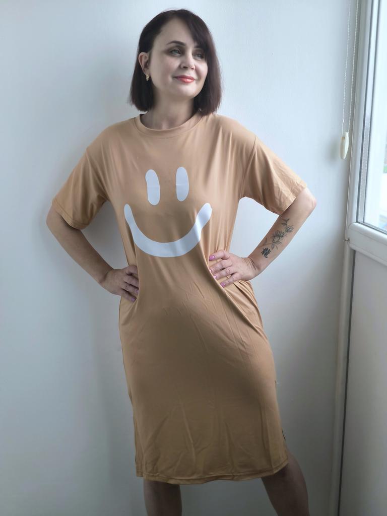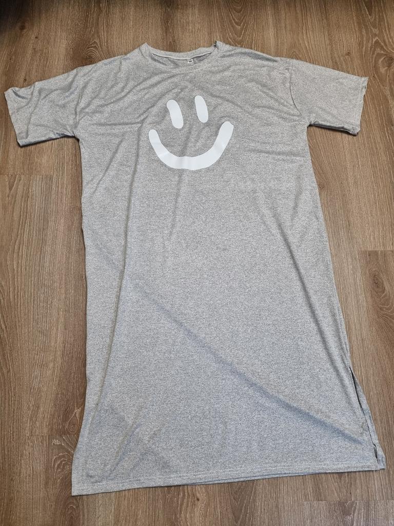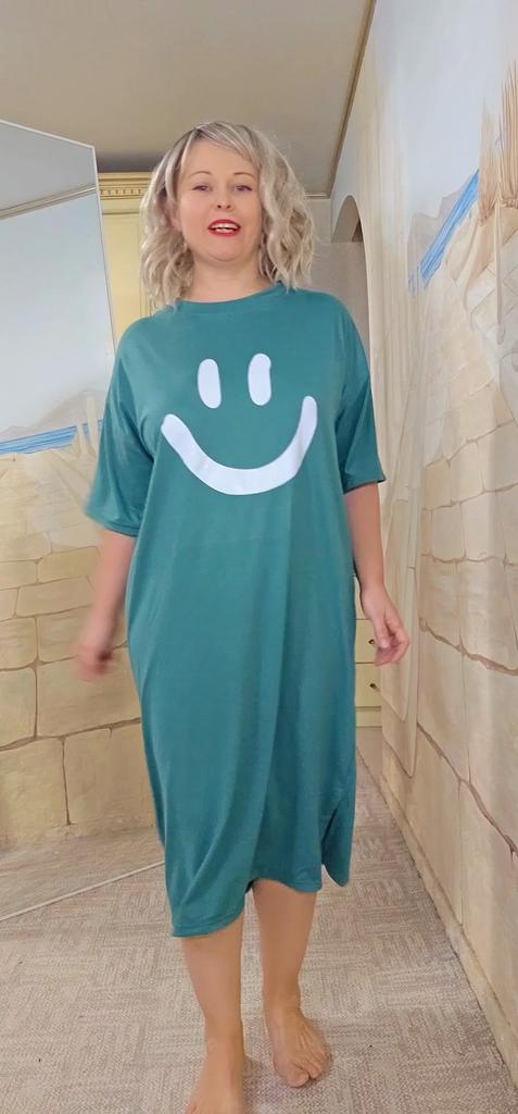 Plus-size Women's Smiling Short-sleeved Dress, Summer Korean Style Loose and Laid-back T-shirt Dress, Nightgown