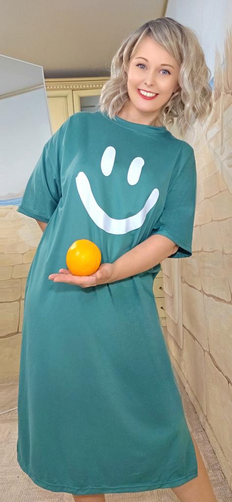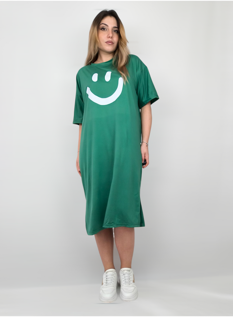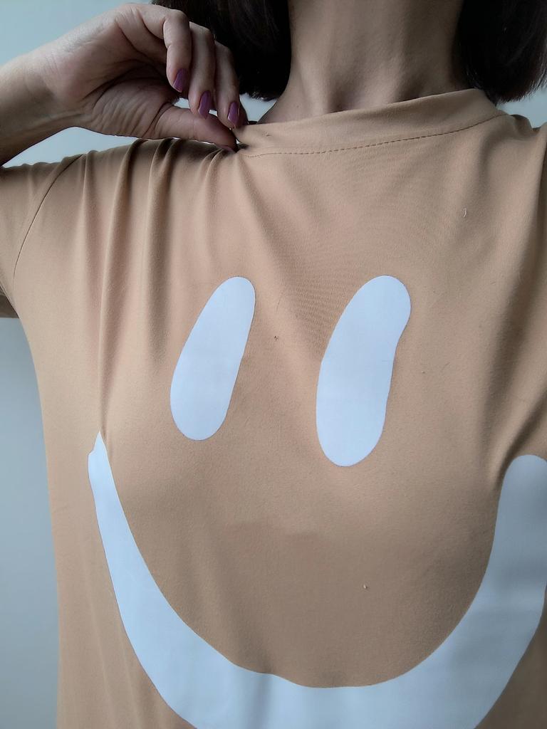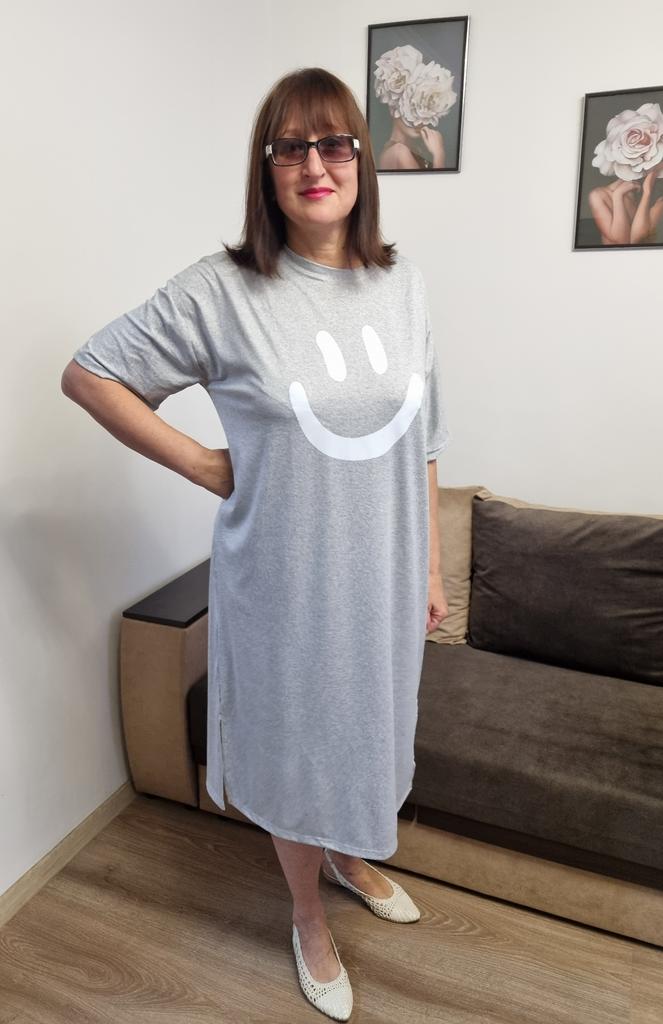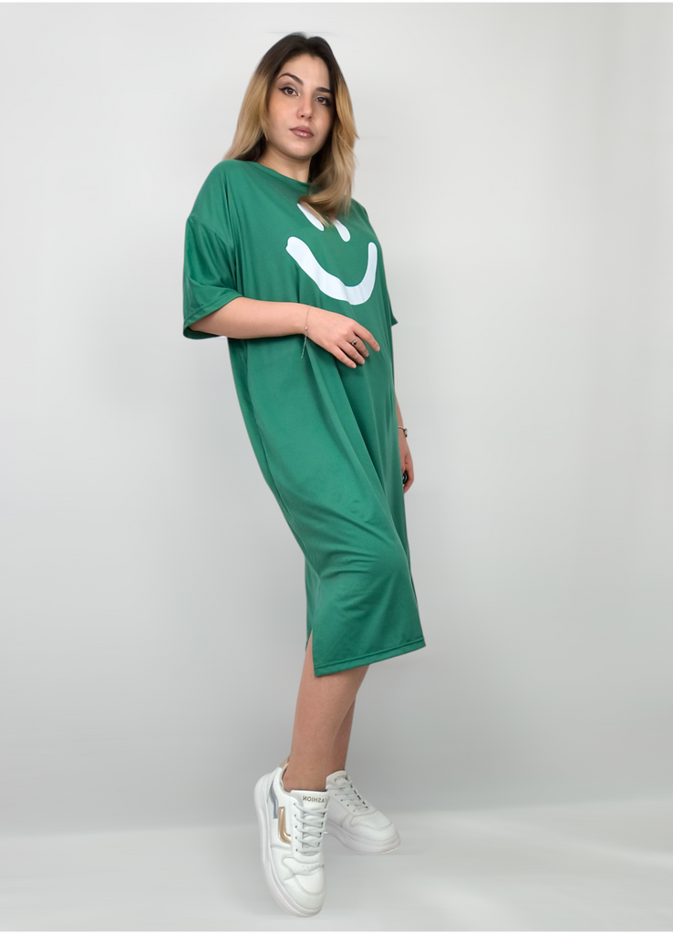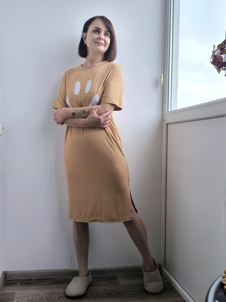 Plus-size Women's Smiling Short-sleeved Dress, Summer Korean Style Loose and Laid-back T-shirt Dress, Nightgown