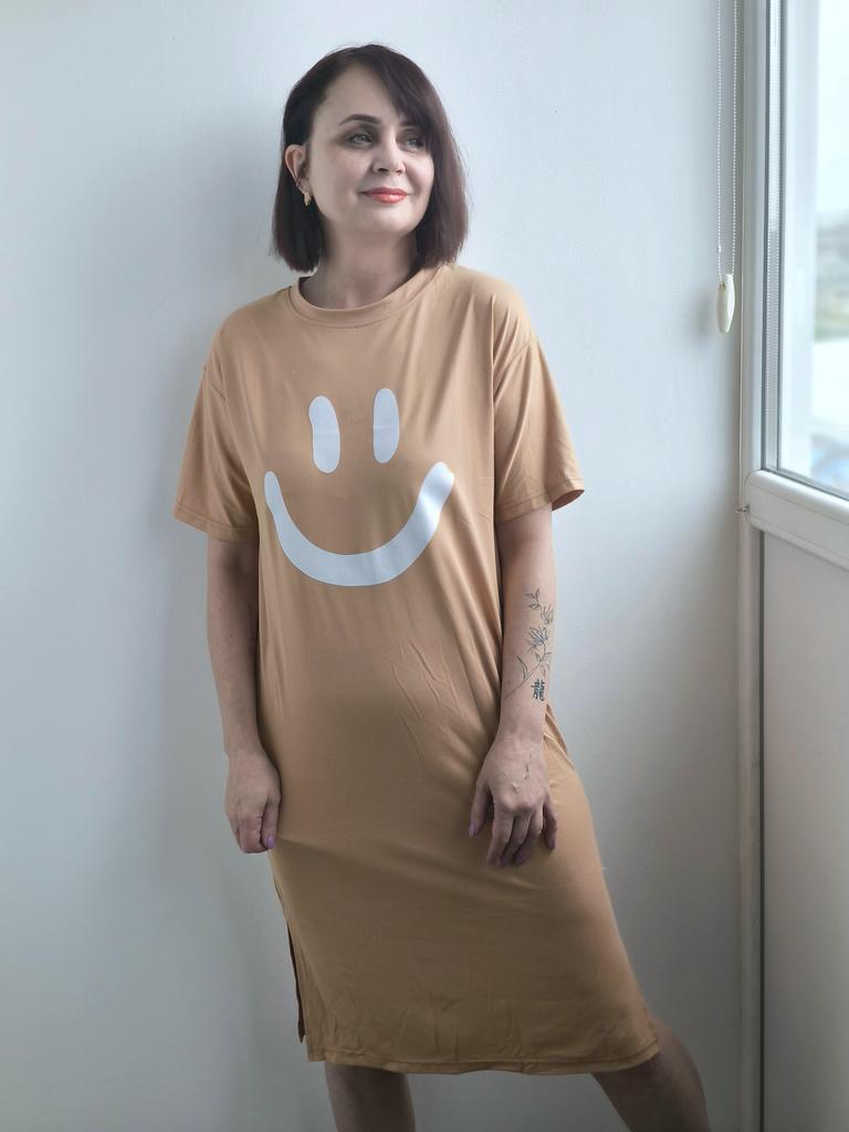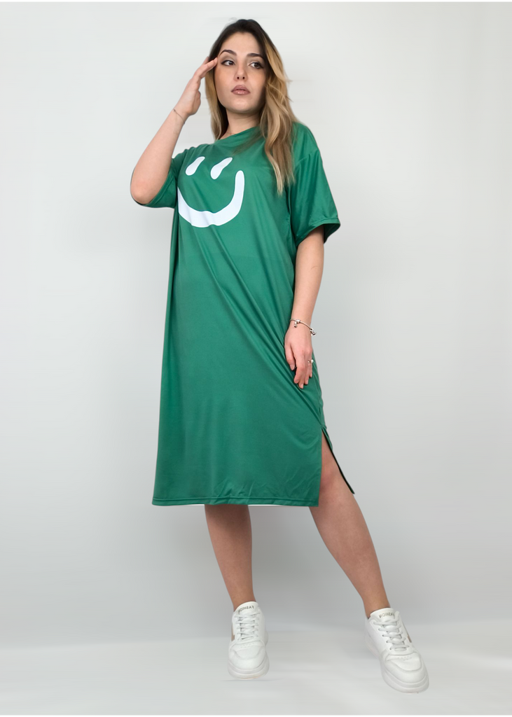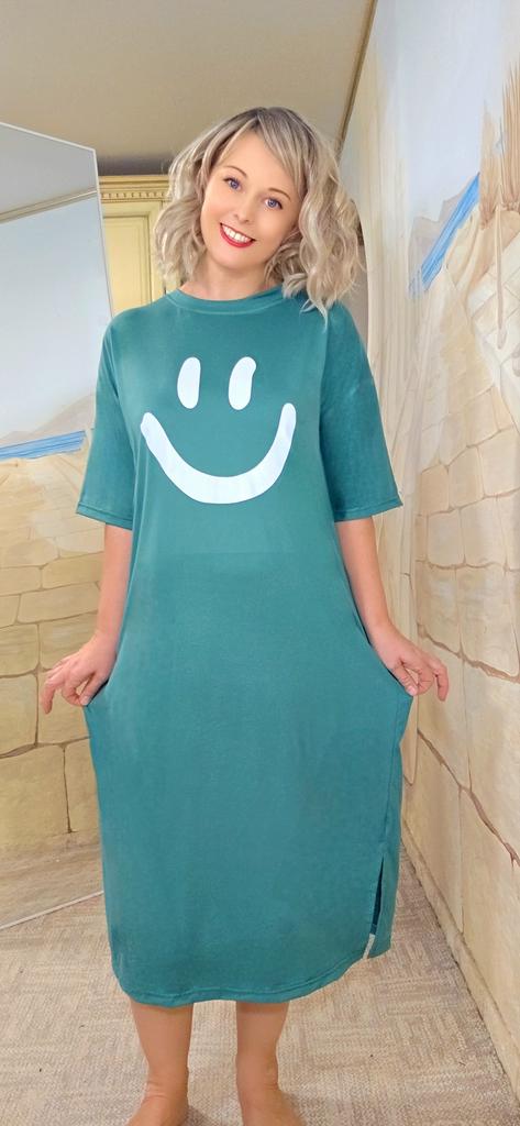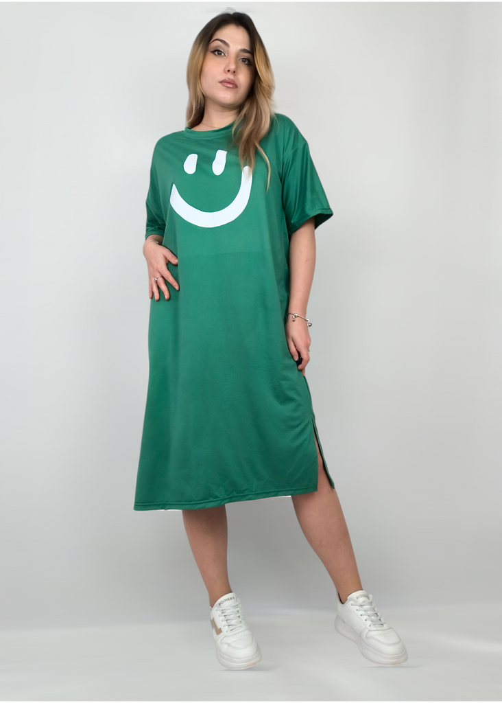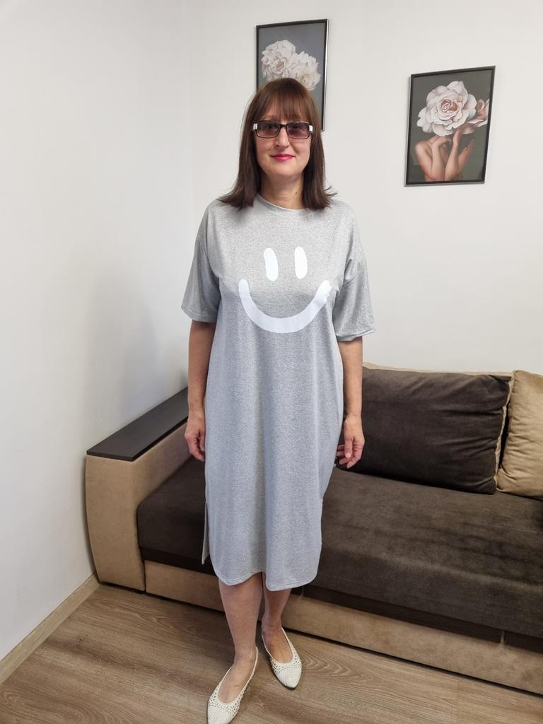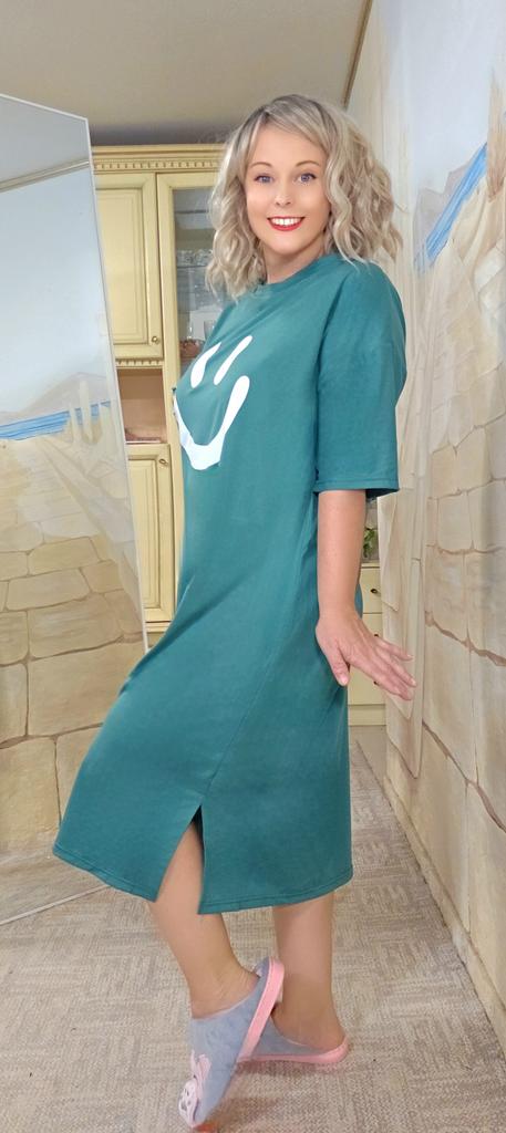 Plus-size Women's Smiling Short-sleeved Dress, Summer Korean Style Loose and Laid-back T-shirt Dress, Nightgown