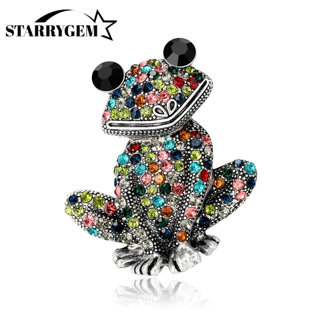 Rhinestone Colorful Frog Brooches for Women Unisex Enamel Animal Pins Office Party Friend Gifts Jewelry Accessories