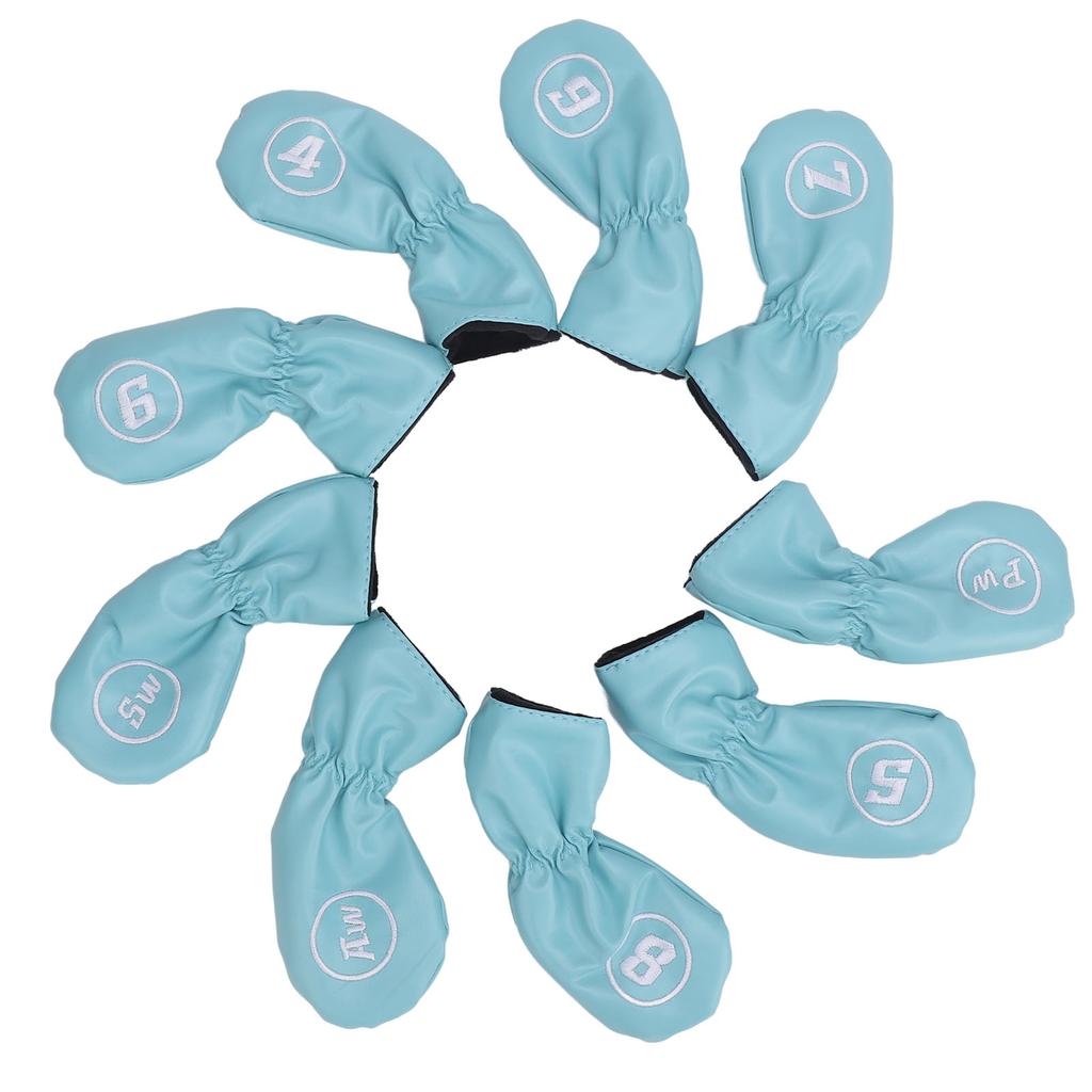 9pcs Golf Club Cover PU Leather Stylish Portable Golf Head Cover for Iron Drive Clubs Green