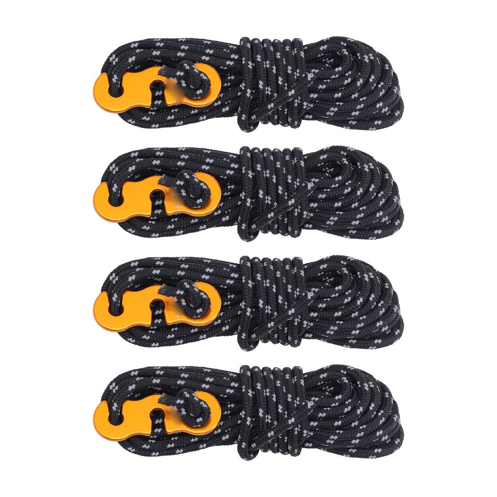4Pcs 3mm Guy Lines Black 13.1ft Per One Reflective 573lb Load Bearing Tent Cords for Camping