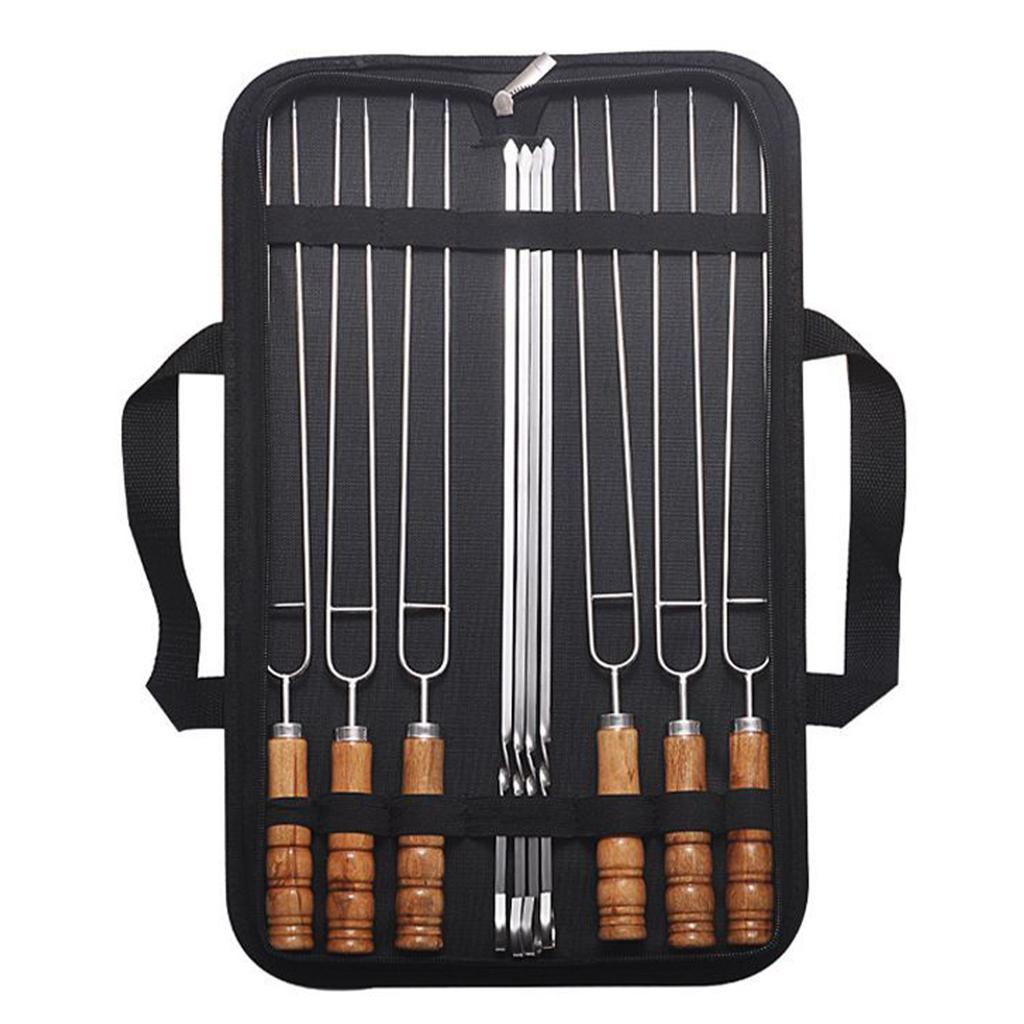 Barbecue Skewers 201 Stainless Steel U Shaped Reusable BBQ Fork Sticks with Wooden Handle for