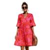 Women's Summer Mini Dress Puff Short Sleeve V Neck Pleated Dress Boho