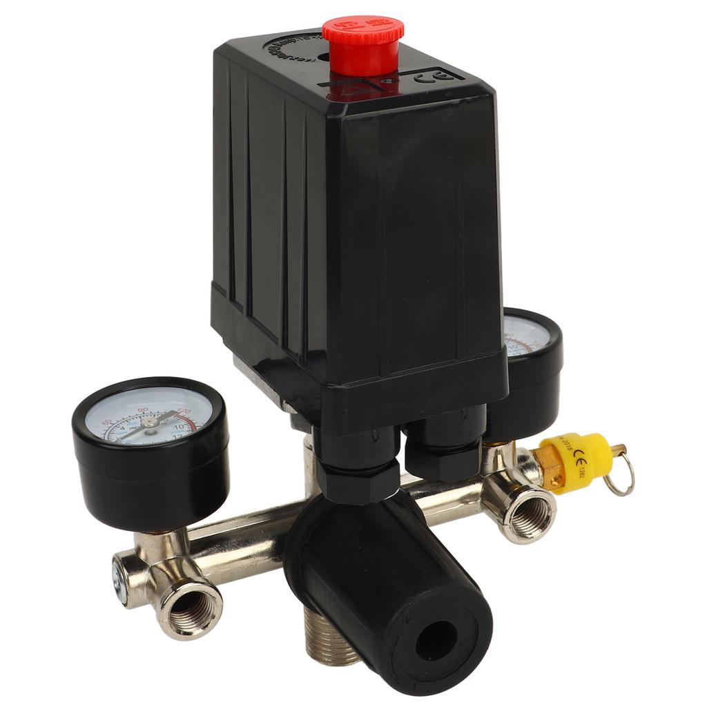 Air Compressor Pressure Switch Kit CE Valve Pressure Control Switch Black Cover Iron Meter Brass US