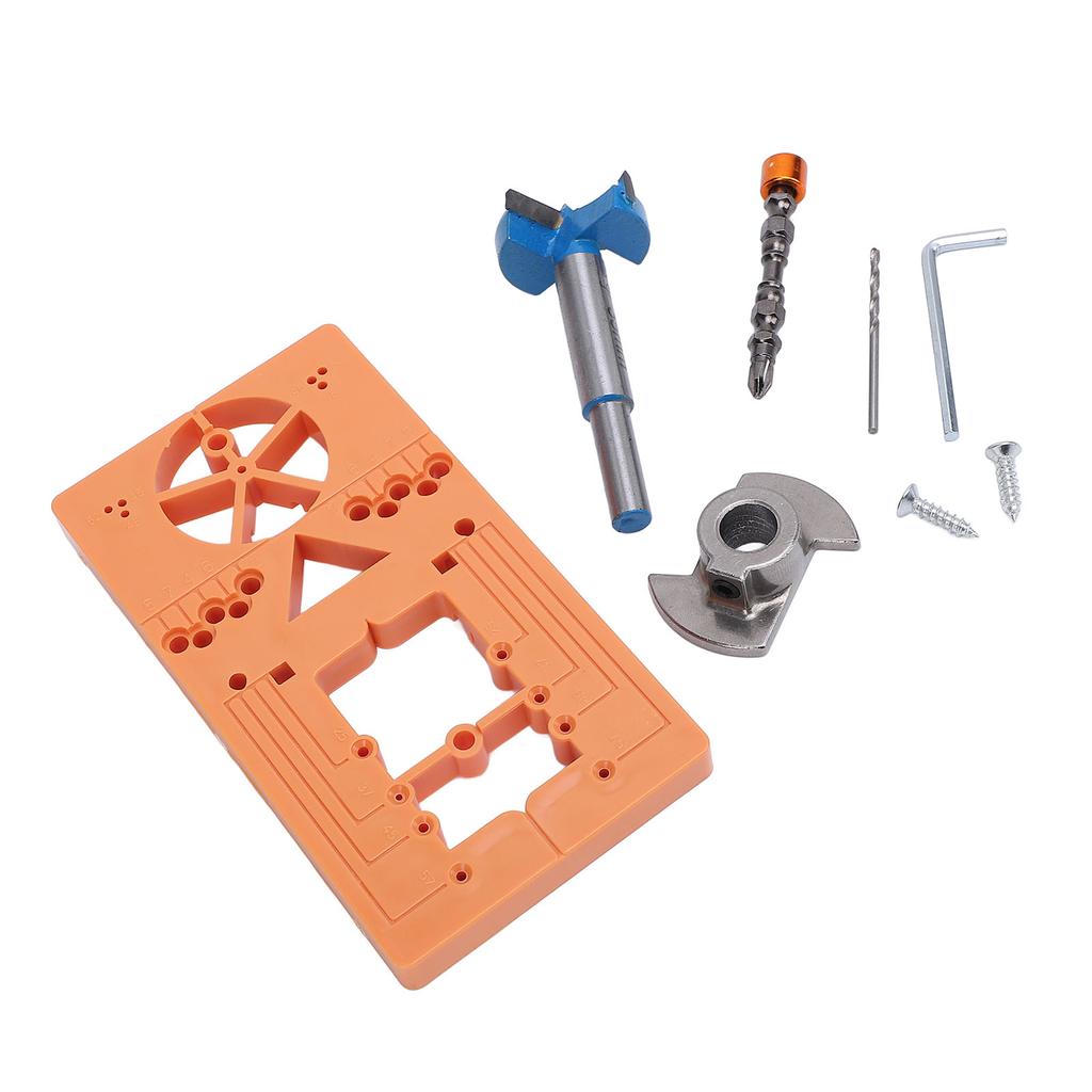 1 x Hinge Hole Drilling Locator1 x 35mm Hole Saw2 x Self Tapping Screws2 x Position Pins1 x Twist Drill1 x Hex Wrench1 x Position Block1 x PH Screwdriver Bit