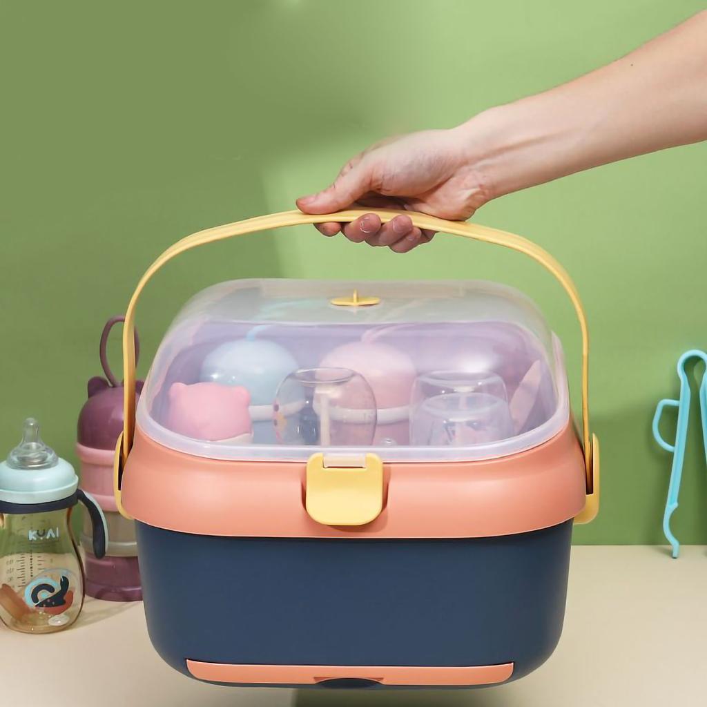 Baby Bottle Drying Rack Nursing Bottle Storage Box Container with Swivel Vent Dust Cover Drain Tray