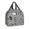 Pattern Insulated Lunch Bag for School Office Halloween Cat Skull Leakproof Cooler Thermal Bento Box Women Children
