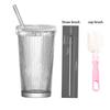 375Ml Stripe Glass Cup with Lid Straw Japanese Style Drinking Chic Mugs Milk Coffee Drinkware Tea Birthday Gifts Whiskey Glasses